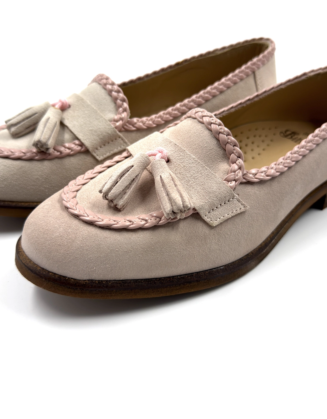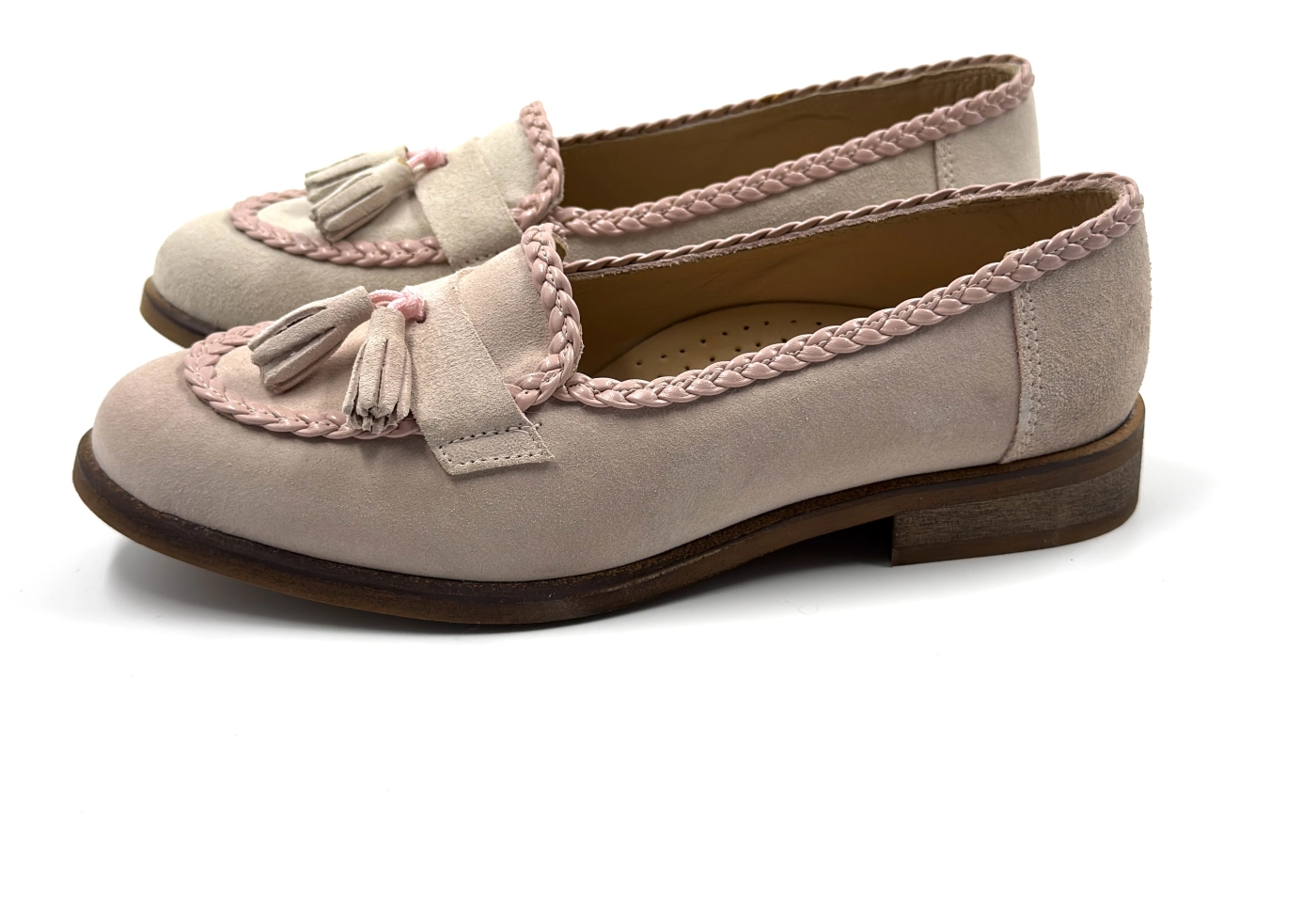 Лоферы с косичками замша, розовый