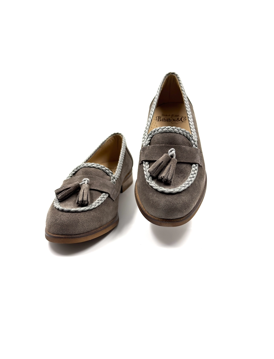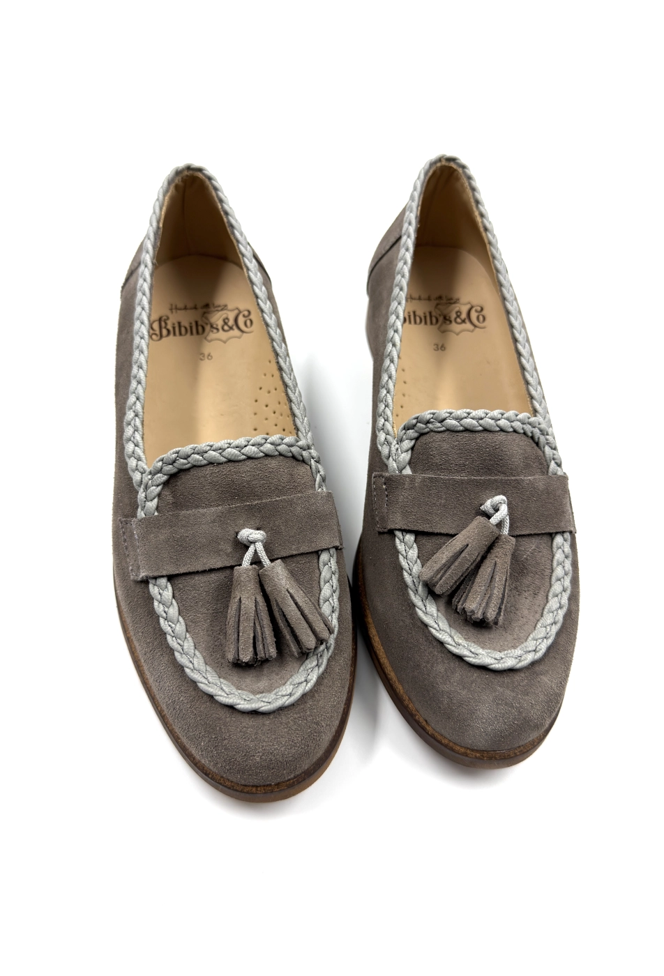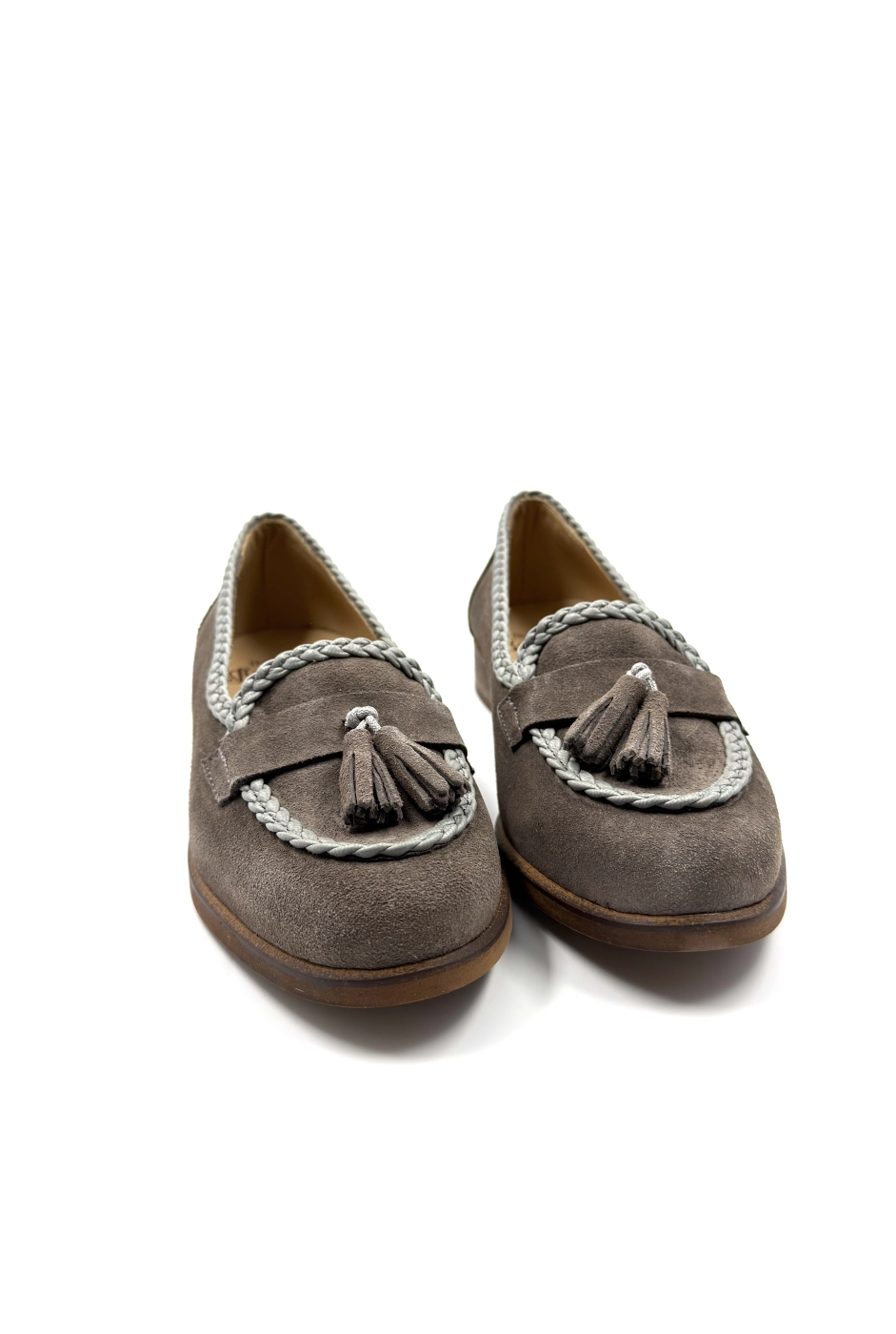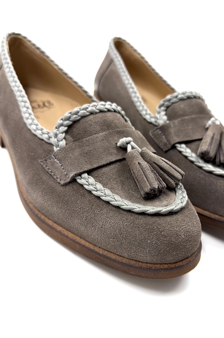 Лоферы с косичками замша, серый