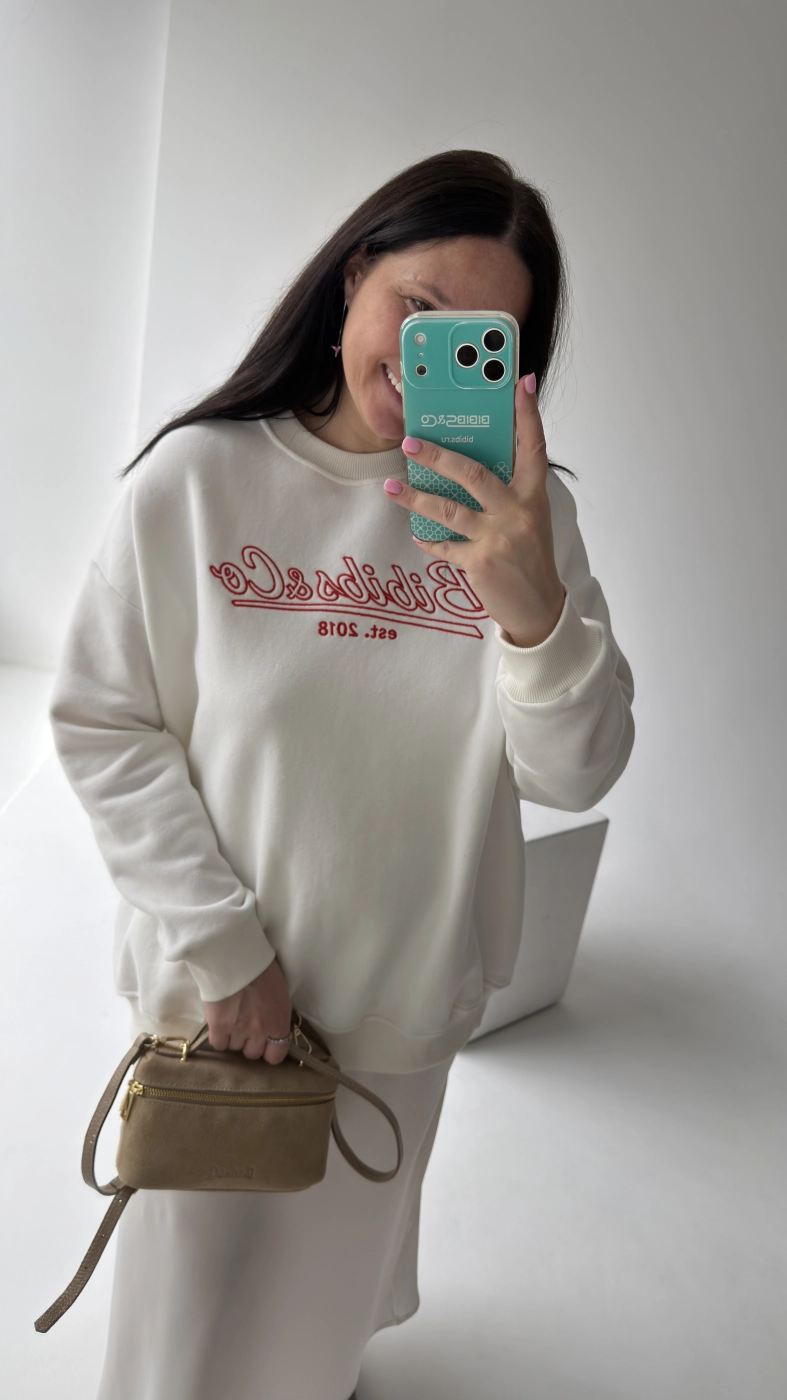 Свитшот Flow молочный с красной вышивкой